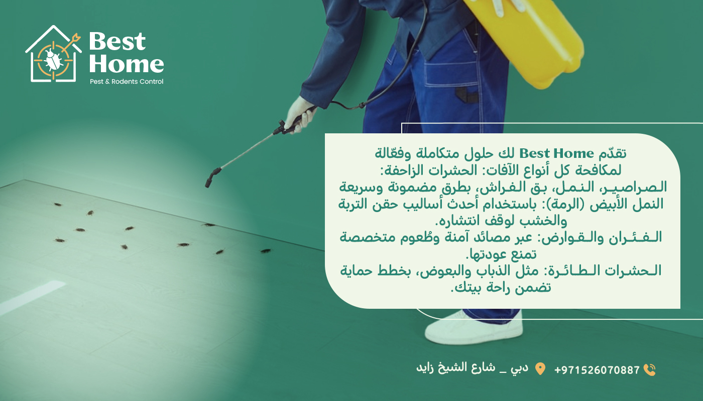 عندما يتعلق الأمر بسلامة منزلك أو شركتك، فإن اختيار شريك موثوق للتخلص من الحشرات هو قرار حاسم. هنا تبرز شركة Best Home كخيارك الأمثل، بفضل خبرتها الطويلة ونهجها الشامل في مكافحة الآفات.